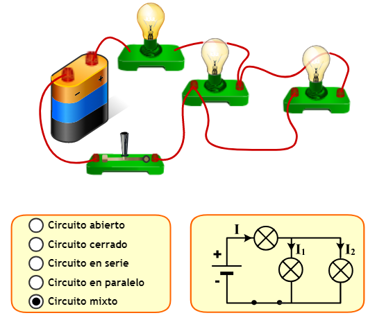 puede observar que el circuito es la combinación de los circuitos en SERIE y en PARALELO.